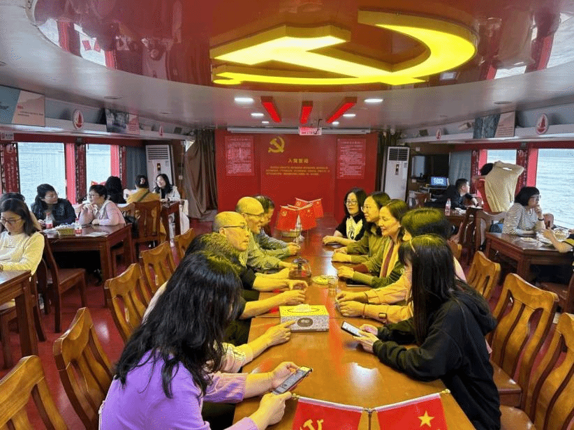 教职工们满怀欣喜齐集台江旅游码头,乘坐“鼓山号”轮船沿着闽江中下游黄金水道而下,历时一个半小时,途径金融街、海峡国际会展中心、城市规划馆、海峡文化艺术中心、马尾造船厂旧址、中国船政文化景区、船政特色文化历史街区等地,最终抵达马尾船政码头。