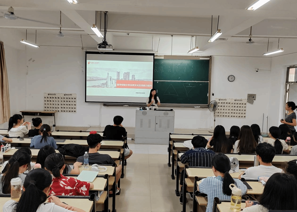 6月7日下午,福州译国译民翻译集团洪梫棽经理为商务英语专业学生作题为“如何克服就业恐惧”的讲座。洪经理根据个人留学经验讲解如何申请留学、留学前要注意的事项,以及在跨文化交际中需要注意点的问题和如何提升跨文化交际能力。