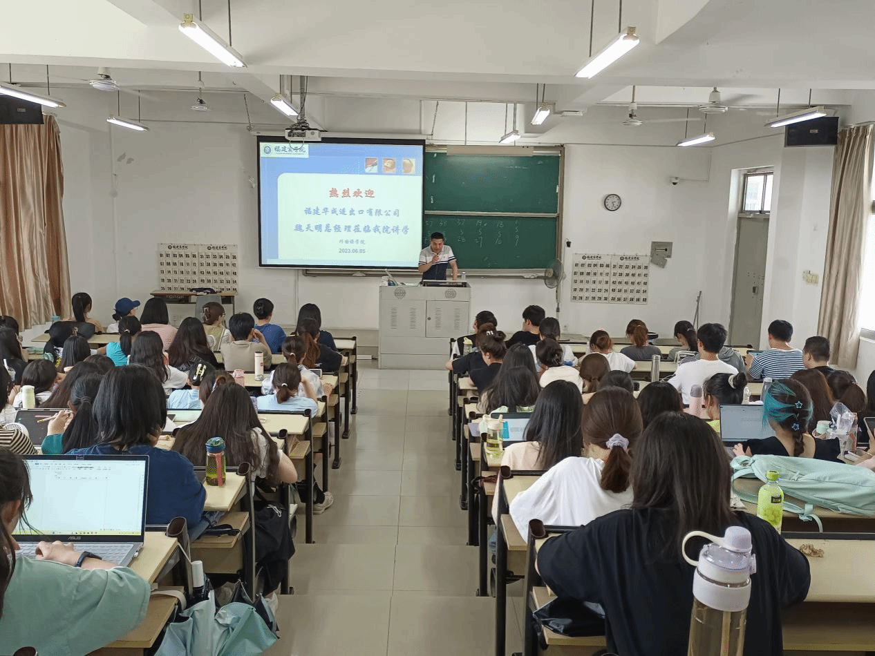 6月5日下午,福建华成进出口有限公司魏天明总经理为商务英语专业学生作题为“跨文化沟通与商务实践能力提升”的讲座。魏总经理从30多年的从业经验出发,用大量的实践案例分析如何提升跨文化沟通能力,从而能避免因语言和文化上的误解而带来的商业风险。