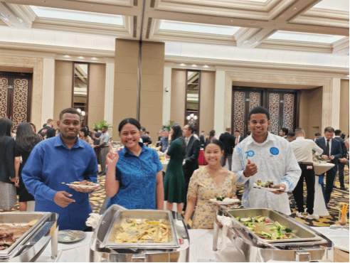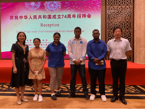 9月27日晚,福建省人民政府举办庆祝中华人民共和国成立74周年招待会。beat365官网对外合作处何文贤处长,beat365正版唯一官网必一池玫院长,以及来自萨摩亚,基里巴斯,斐济和所罗门群岛的留学生代表受邀参加招待会,并与在场国际友人、港澳台同胞代表等各界人士畅谈在华、在闽生活感受,共同欢庆中华人民共和国成立74周年。