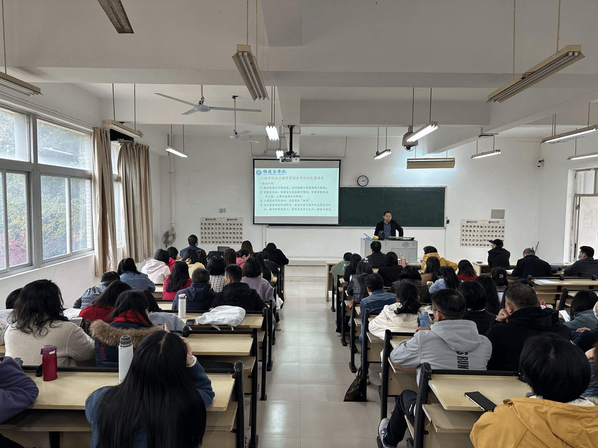 为顺利迎接教育部本科教学工作合格评估及预评估,3月28日beat365官网于马尾校区远志T1教师召开本科教学工作合格评估再动员再部署会,会议由池玫院长主持,学院党政领导及全院教职工参加会议。