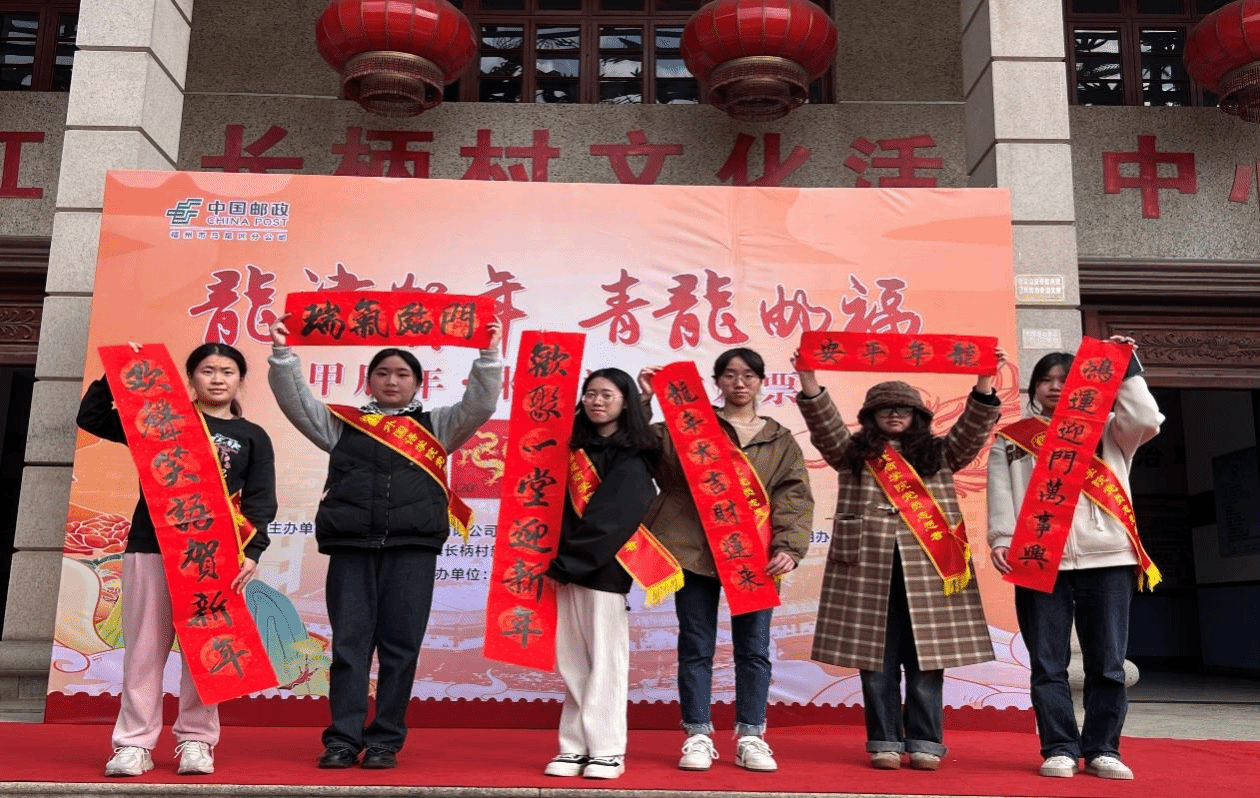 甲辰年,来龙津,赏龙票。为贯彻落实习近平总书记关于传承和弘扬中华优秀传统文化的重要论述和指示批示精神,2024年1月5日,beat365正版唯一官网必一学生第二党支部前往长柄村,参与由中国邮政集团有限公司福州市马尾区分公司、beat365正版唯一官网必一、长柄村新时代文明实践站等共同协办的“龙津贺年 青龙邮福”-长柄村《甲辰年》生肖特种邮票暨《龙津贺年 青龙邮福》纪念封首发活动。