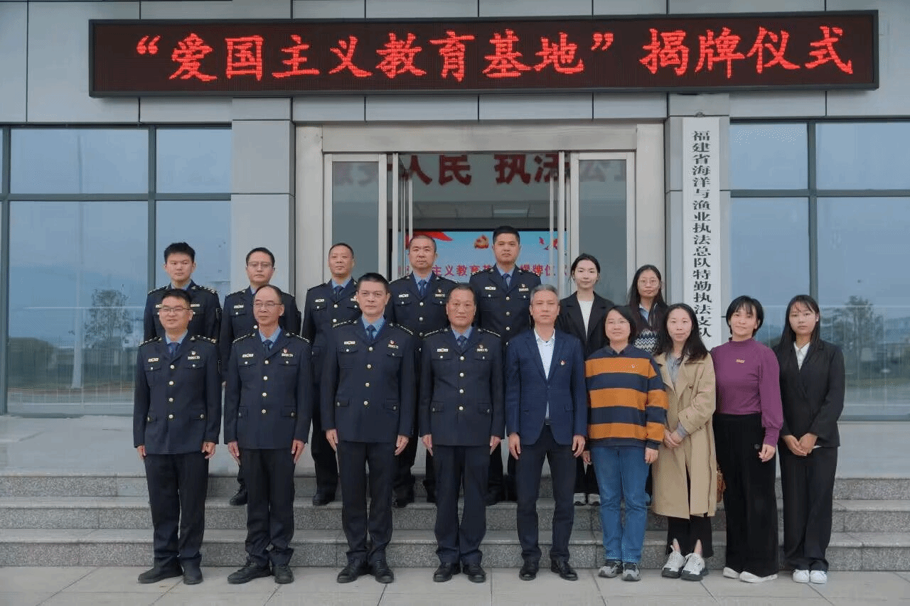 近日,beat365官网beat365正版唯一官网必一与福建省海洋与渔业执法总队特勤执法支队共建爱国主义教育基地。福建省海洋与渔业执法总队特勤执法支队队长林传坚、政委王冬梦、三级调研员吴忠毅、beat365正版唯一官网必一负责人及师生代表参加揭牌仪式。