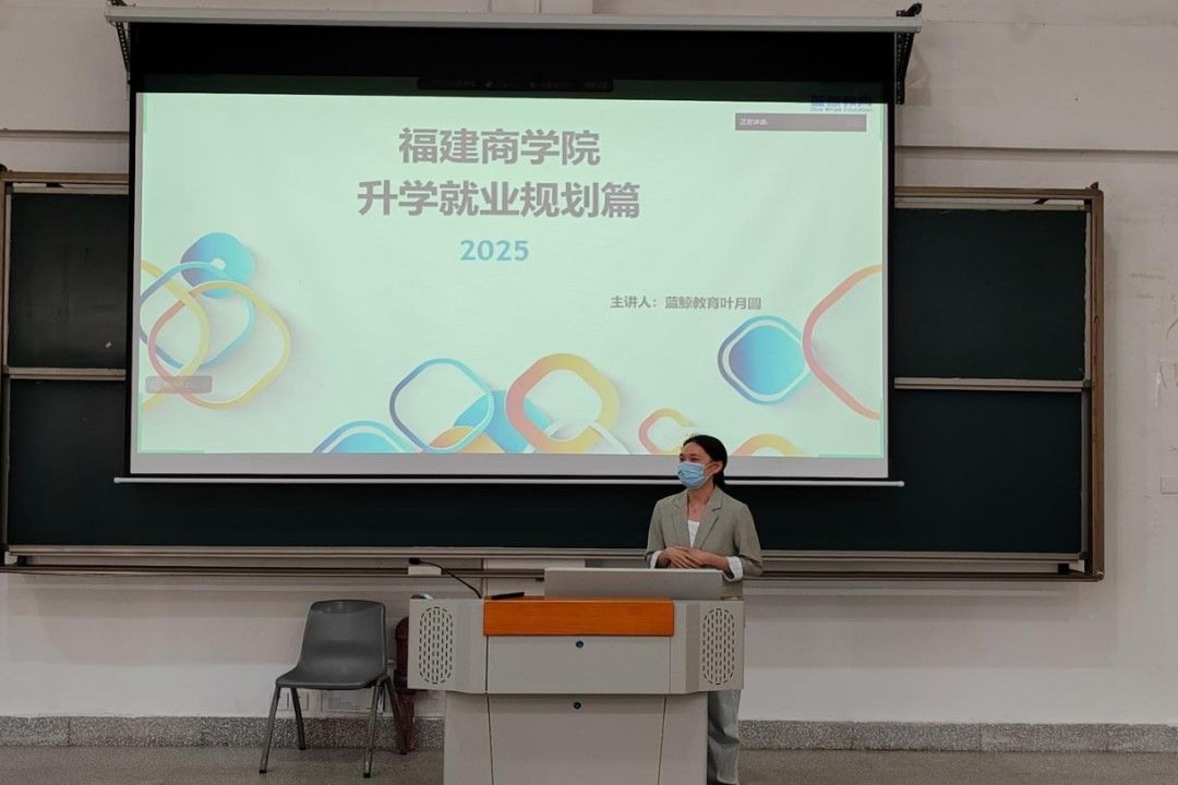 新东方教育集团前途出国市场经理闫俊杰从境外深造优势对比出发,运用相关专业学生的成功申请案例,为同学们解析了留学申请的必要条件。福州一飞教育的蒋晓刚校长重点分享了雅思考试的用途、雅思考试题项以及雅思学习备考经验和建议。福州蓝鲸教育留学叶月圆总监从当前就业形势出发,就如何做好职业生涯规划与同学们进行了交流。