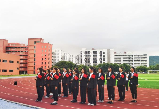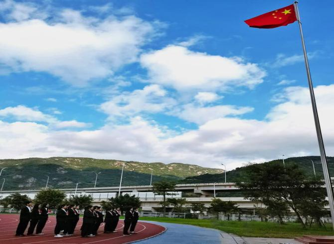 为庆祝中华人民共和国成立72周年,引导学生深入学习党史,厚植爱国主义情怀,2021年10月4日,beat365正版唯一官网必一于马尾校区田径场举行升旗仪式,学院师生代表参与本次活动。