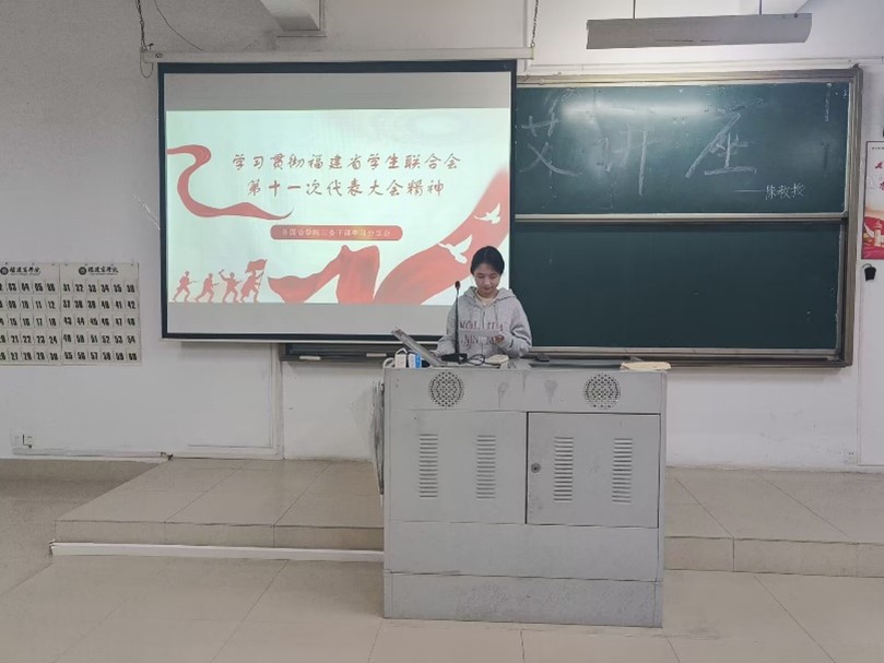 会上,学生干部结合自身学习感悟,就大会精神发表心得体会。黄思坪同学认为作为福建青少年,更应该磨练坚强意志,锤炼过硬本领,以昂扬的状态全面发展,以奋进的姿态许党报国,积极投身于新时代新福建建设,争做爱思考,善创造的新青年,为福建省的现代化建设贡献青春的力量。陈锦义同学以大会内容为切入点,深切地感受到党中央对青年学生的信任和期望。他呼吁学生干部要努力发挥带头作用,团结广大同学,在奋力谱写中国式现代化福建篇章中奏响青春建功最强音。听取学习心得分享后,在座的同学们纷纷点头表示赞同,他们认为新时代新青年要以习近平新时代中国特色社会主义思想为指引,坚定理想信念,持之以恒充实知识储备,孜孜不倦获取实践真知。