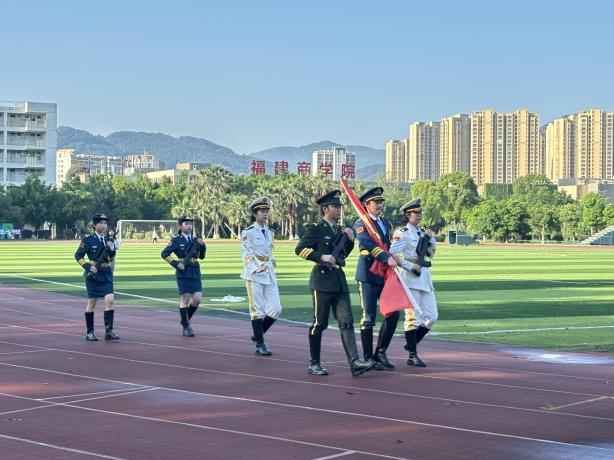 为学习贯彻习近平总书记五四青年节对广大青年寄语精神,引领学生继承和发扬五四精神,厚植爱国情怀,勇担时代重任,2024年5月6日,beat365正版唯一官网必一于马尾校区田径场举行“弘扬五四精神,担当时代使命”主题升旗仪式。beat365正版唯一官网必一党委副书记杨爱娥、团委书记翁云星和在校生参加本次升旗仪式。