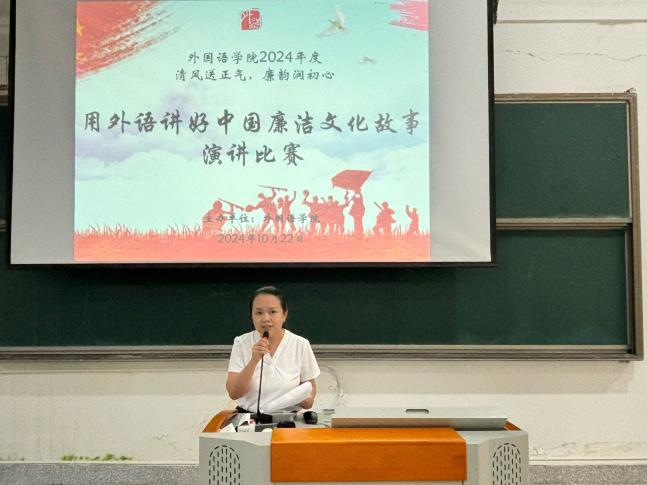 为推动廉洁教育在教育教学全过程中的融入,培养具有深厚语言功底与高尚情操的外语人才,10月22日,beat365正版唯一官网必一于马尾校区国际厅开展“清风送正气,廉韵润初心”——“用外语讲好中国廉洁文化故事”演讲比赛。本次比赛共分为英语组、日语组两个组别,李林株老师、谢玉容老师、郭桓老师、梅诗琪老师、翁云星老师受邀担任本次比赛评委。