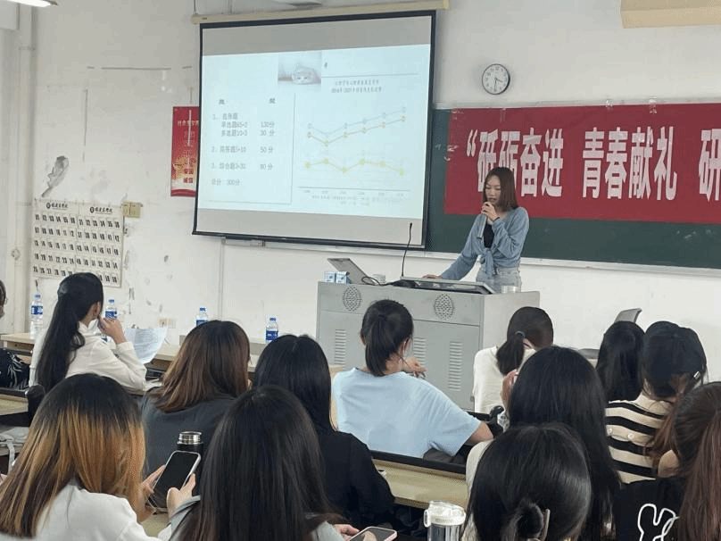 分享会上,7位考研上岸的学姐依次分享经验。学姐们从多个角度为同学们科普了考研的知识,鼓励同学们恰当定位、整理心态、分段学习,并且衷心祝愿未来学弟学妹们考研成功。在问答环节,同学们积极踊跃地提问,学姐们热心地答疑解惑。同学们深受鼓舞、精神饱满,整个分享会现场激情洋溢,振奋人心。