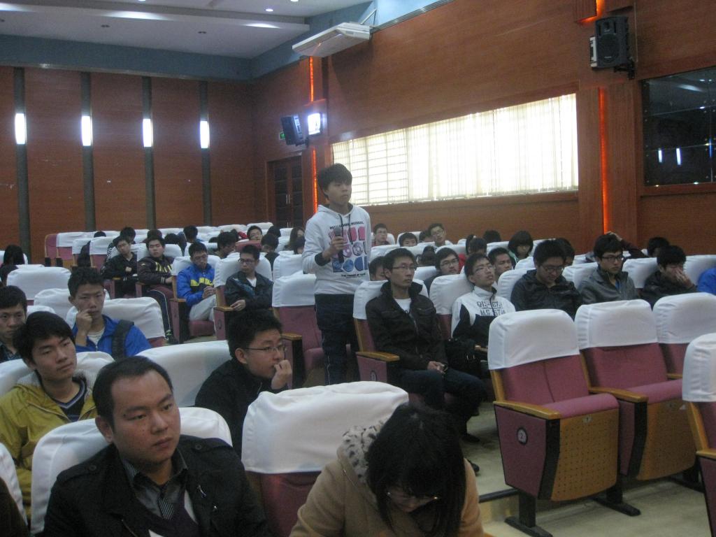 于岩教授首先为同学们详细介绍了创新实验班成立的背景及目的、选拔流程、退出机制、特色、相关的政策保障以及具有针对性的培养方案等内容。通过于岩教授的介绍,使同学们对于创新实验班有了大致了解,特别是关于进入创新实验班的具体步骤和严格要求,例如大一学年通过四级、大二学年通过六级,在年段学年成绩排名前30%等。接着,陈伟民副书记上台发言。其指出,创新实验班的成立在于探索实践高等教育大众化背景下的精英教育人才培养模式,培养具有创新精神的高素质拔尖人才,希望各位同学踊跃报名参与,把握此次机会。大会最后,陈书记和于教授针对同学们询问的有关创新实验班培养方案及培养目标等问题一一进行详尽解答。