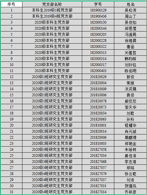 按照发展党员工作有关规定,经基层党支部推荐,必赢76net官网党委于2022年3月21日备案,同意确定吴松滨等31名同志为发展对象,现将备案名单公布如下: