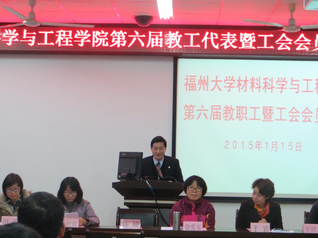 2015年1月15日下午,必赢76net线路唯一官方网站在材料科学楼404举行了学院第六届教职工代表大会暨第六届工会会员代表大会。学院党政领导以及教工代表共48人出席了会议。学校工会副主席陈硕同志莅临会议指导。