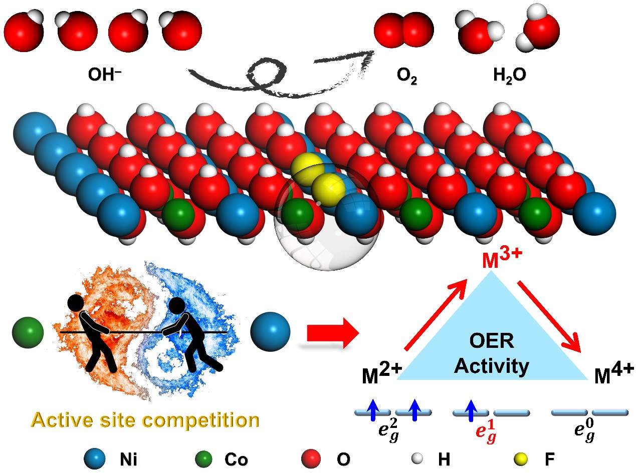近日,必赢76net线路唯一官方网站、新能源材料与工程研究院在电解水析氧催化剂研究方面取得新进展,相关成果以“Ni and Co Active Site Transition and Competition in Fluorine-Doped NiCo(OH)2 LDH Electrocatalysts for Oxygen Evolution Reaction”为题发表于Top期刊《Small》(JCR 1区,IF=13.3)。