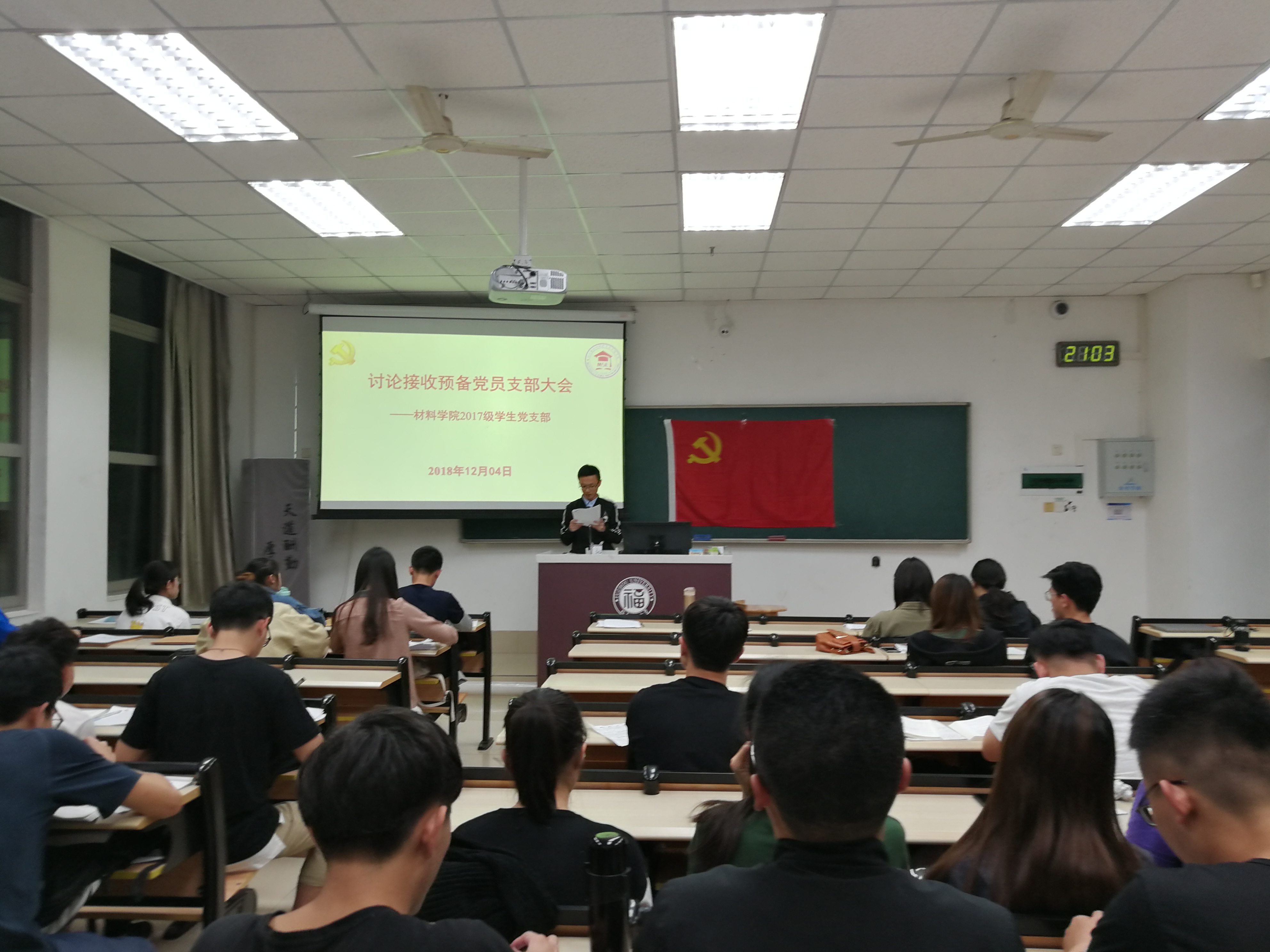 12月4日,必赢76net官网17级本科生讨论接收预备党员大会于西二406顺利举行。本次大会由辅导员王文栋老师主持,5名正式党员、6名发展对象和17级全体入党积极分子到场。