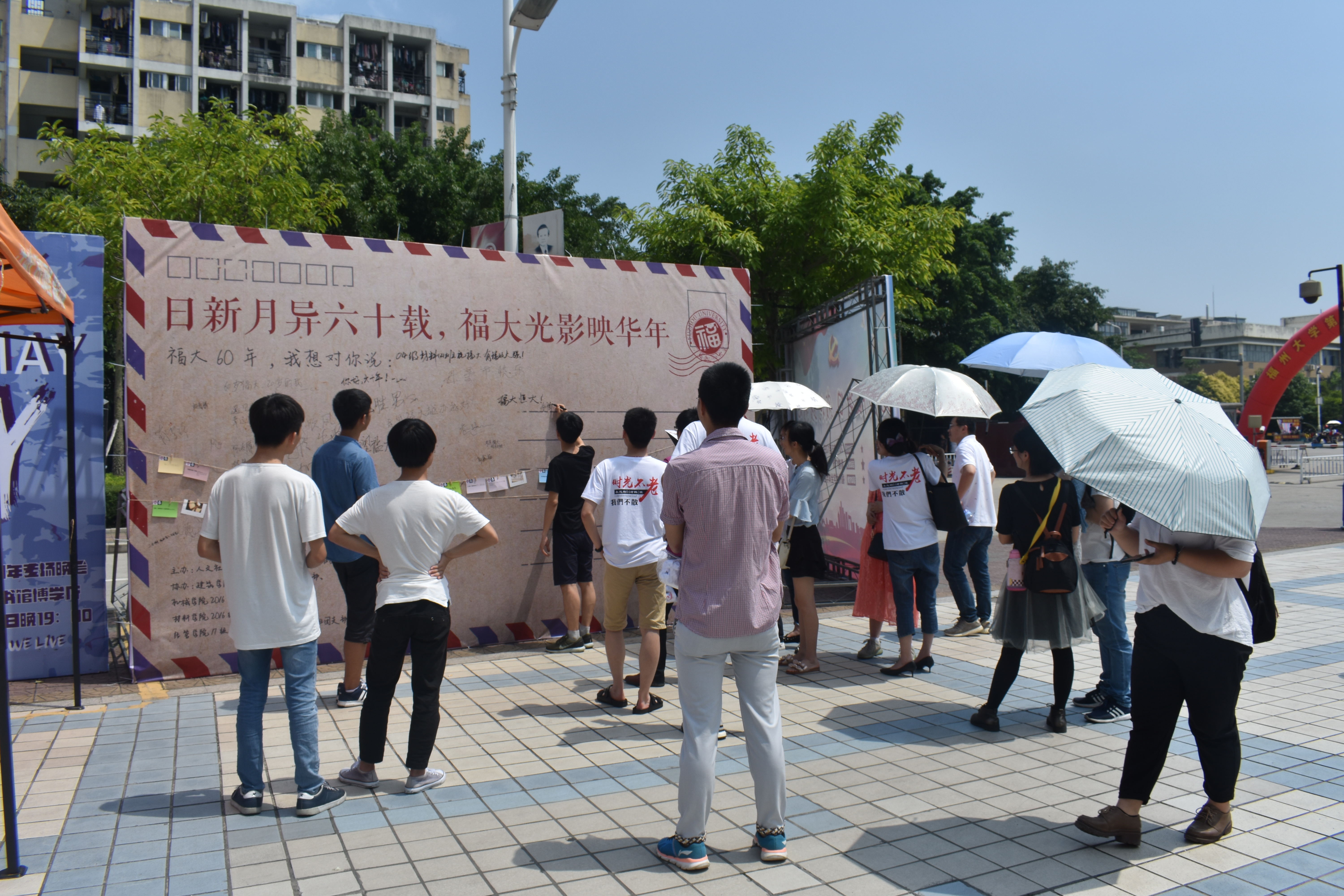 “六十周年,我想对福大说_____”“何其有幸,我已经陪福大度过了她六十分之______的时光”“我对福大的第一印象是_______”。5月13日清晨的青春广场上,过往的同学们纷纷在展板前驻足,本次活动的展板背景是一封巨幅信封,而寄信人则是每一位福大学子。同学们都热情满满的为必赢76net线路唯一官方网站寄上专属明信片,并在展板上踊跃留言。“有幸能陪你度过第60年,生日快乐!”“让福大见证我的成长,也让我见证福大的辉煌”。除此之外,留言板上还意外地汇集了来自福建师范大学、闽南师范大学等高校的学子祝福,而一则“04级材料2班祝福福大,有福极大强!”的留言更凝聚了13年前的校友深情,为此次活动增添了一份厚重情怀。