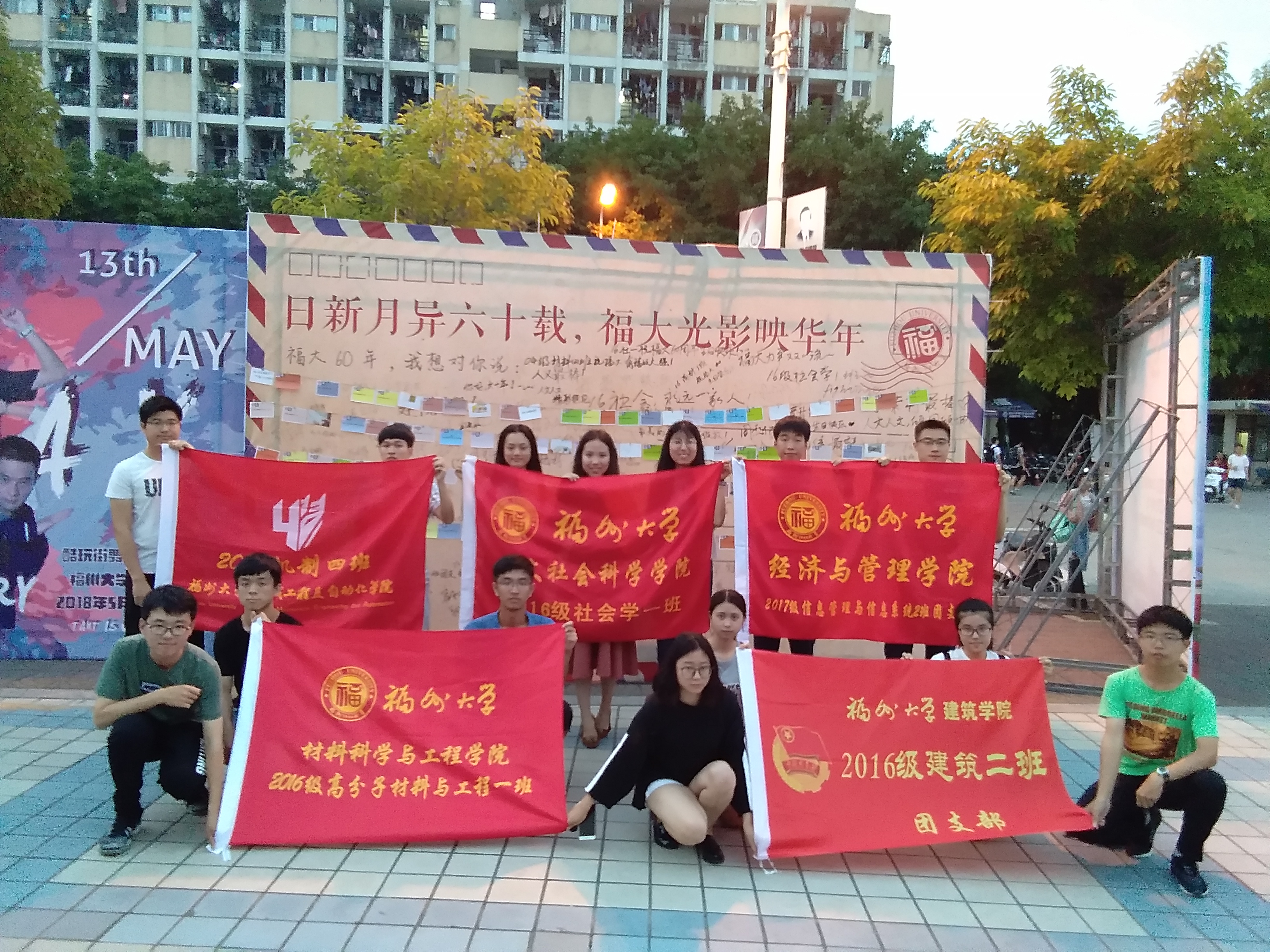 甲子轮回,忆往昔峥嵘岁月;六十华诞,看今朝百舸争流。六十年春华秋实,风雨兼程;六十年开拓进取,沧桑砥砺。近日,在必赢76net线路唯一官方网站六十华诞到来之际,由人文学院16级社会学1班团支部主办并联合我院16级高分子1班、建筑学院16级建筑2班、机械学院16级机制4班以及经管学院17级信管2班团支部共同开展了的“日新月异六十载,福大光影映华年”为主题的校庆纪动顺利举行。