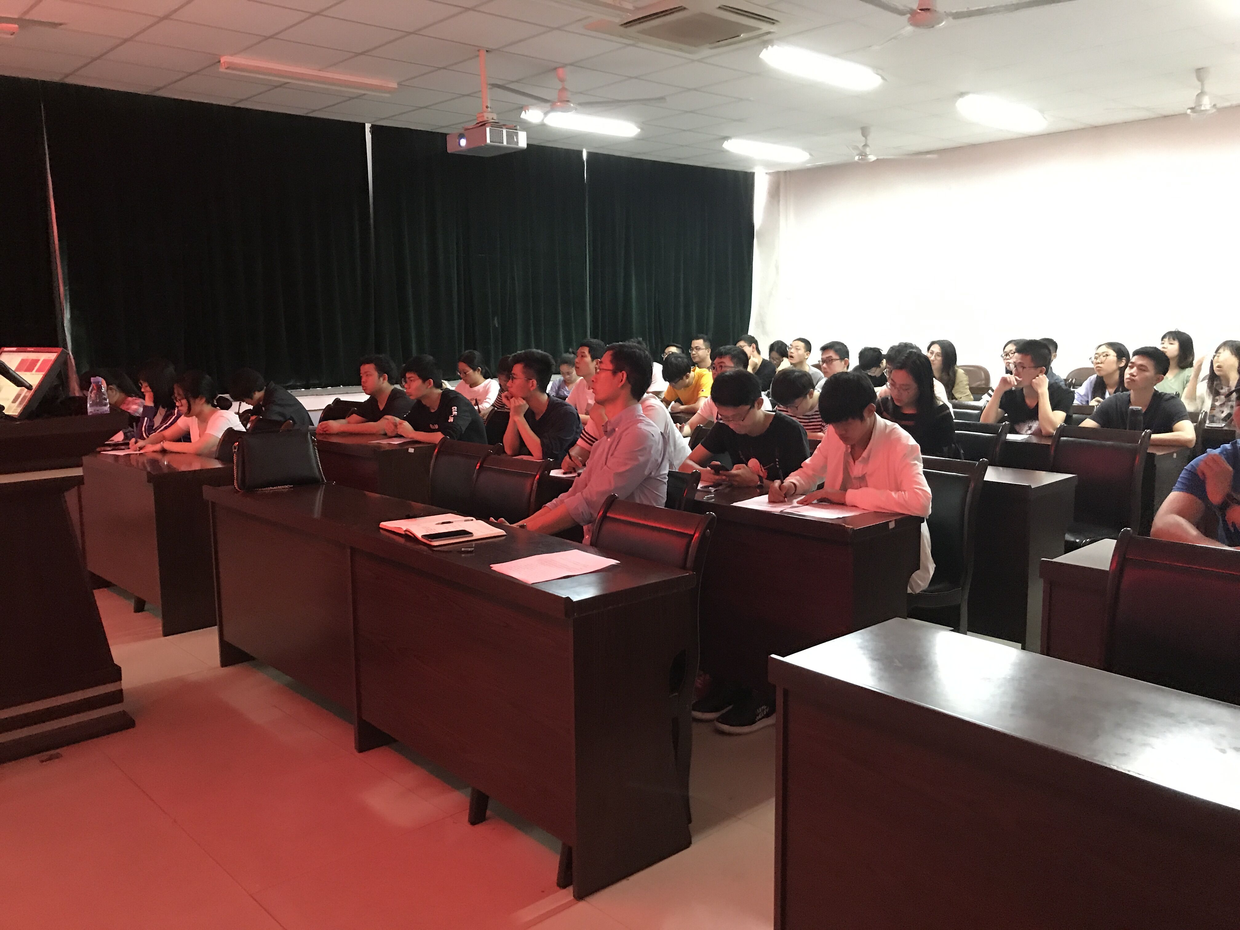 报告上,王海花教授从三个方面介绍了水性聚合物纳米复合材料在实际中的应用。该课题组制备的挥发性有机物(VOC)用作聚合物涂层,可用于金属防腐、增强纸张机械性能和木材表面保护。通过采用不同掺杂及的原位化学氧化聚合法制备的纤维素纤维/聚吡咯导电纳米复合材料,具有增强的导电性,高稳定性和机械性能,应用于防静电、电磁屏蔽和储能材料中。通过使用聚吡咯和聚苯胺等导电聚合物作为原料制备的水性导电复合材料,可直接用作导电油墨或涂料,也适用于大规模生产。报告尾声,王教授与必赢76net官网师生就相关问题进行深入的交流和沟通。
