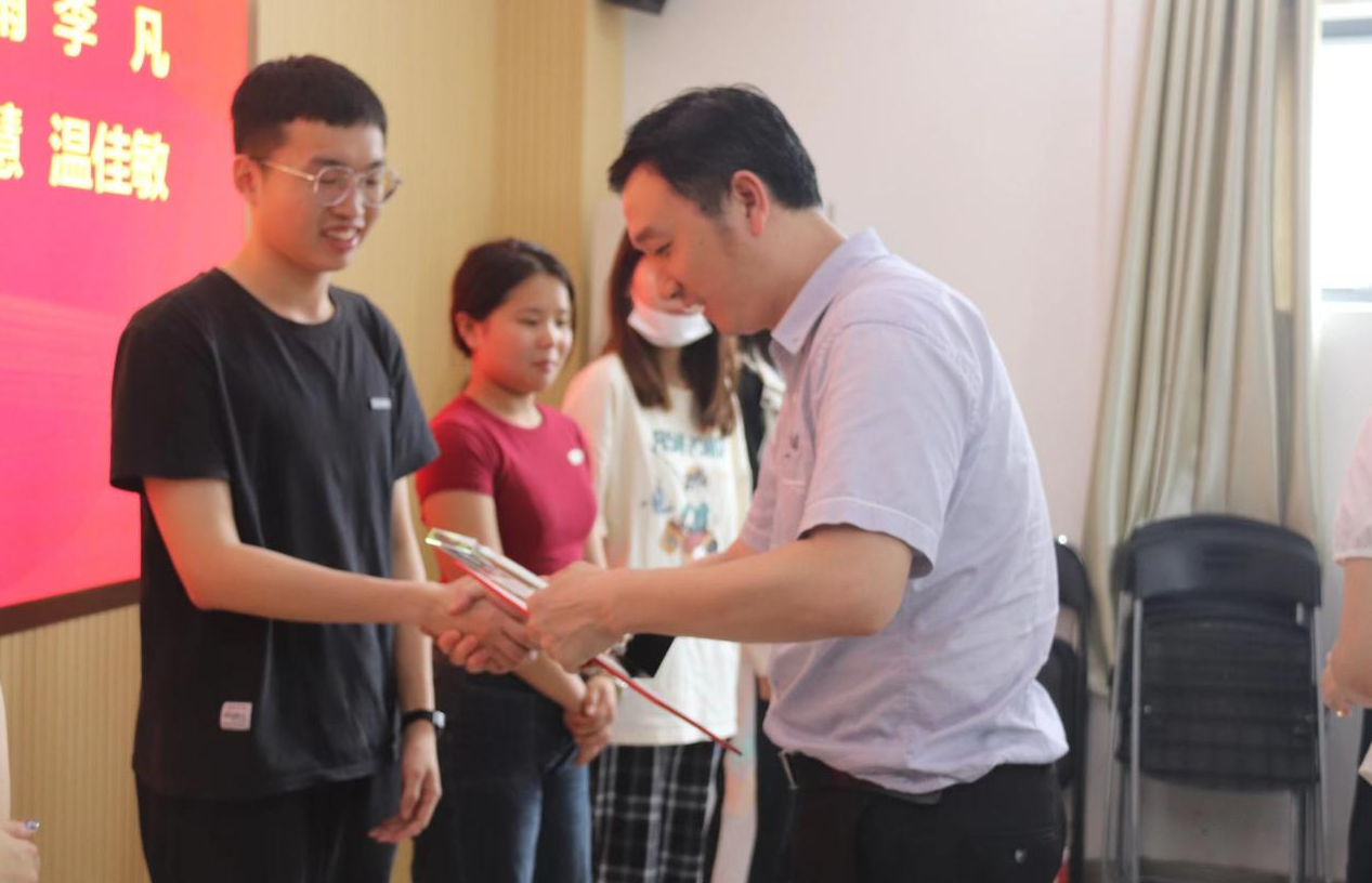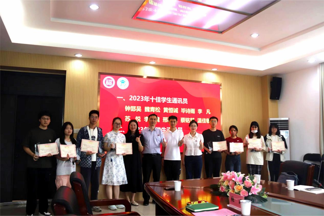 会议伊始,同学们观看了关于新闻工作者的短片,对宣传工作有了更深厚的了解,对兢兢业业的宣传工作者有了更深的敬意。接着,由辅导员张庭士老师宣读表彰决定,决定授予钟郅吴等10人2023年十佳学生通讯员称号,授予钟郅吴2023年度学生通讯员称号,授予蒋德江等8人2023年“学习强国”年度之星称号。由张志忠副书记为获奖人员颁发奖杯和荣誉证书。在自由交流环节中,获奖同学都发表了各自对宣传工作或是学习强国学习的看法和接下来的学习工作计划,张志忠副书记对每位同学的发言都做了肯定,激励同学们继续努力,为各自的工作添砖加瓦。